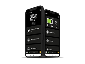 Asistenti zanor IVECO DRIVER PAL ofron informacione specifike për automjetet elektrike, si kontrolli i gjendjes së automjetit, niveli i baterisë, programimi në distancë i karikimit dhe parakondicionimi, navigimi drejt stacioneve të karikimit dhe më shumë.