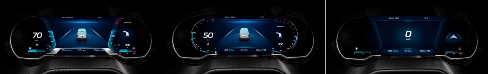 Klasteri i ri dixhital TFT 10" ose 12" është plotësisht i rikonfigurueshëm dhe ofron një ndërfaqe të avancuar ADAS. Infotainment është i integruar dhe kompatibël me Apple Carplay dhe AndroidAuto, në mënyrë që dy telefona të lidhen njëkohësisht përmes Bluetooth.