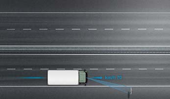 Njohin një përplasje të mundshme përpara, paralajmërojnë drejtuesin dhe ngadalësojnë automjetin sa më shumë që të jetë e mundur. Garanton frenim të plotë nga 80 në 0 km/h.
