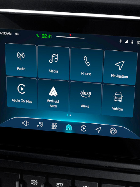 - New full TFT 10" or 12" digital cluster is completely reconfigurable and provides an advanced ADAS interface. Infotainment is integrated and compatible with Apple Carplay and AndroidAuto, so that 2 phones can be connected contemporarily via Bluetooth.