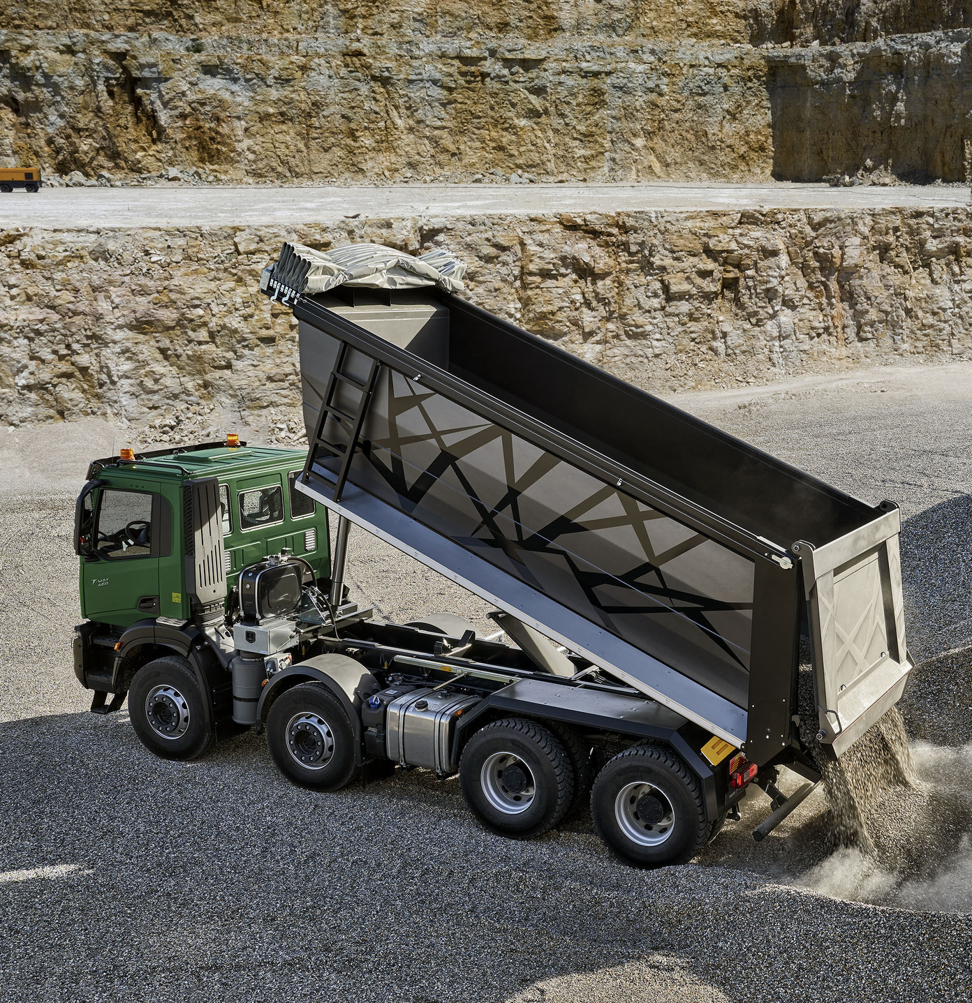 Falë shasisë së fortë dhe optimizimit të peshës, IVECO T-Way është projektuar për t’u pajisur me karroceri vetëshkarkuese me kapacitet të lartë për të transportuar ngarkesa të mëdha.