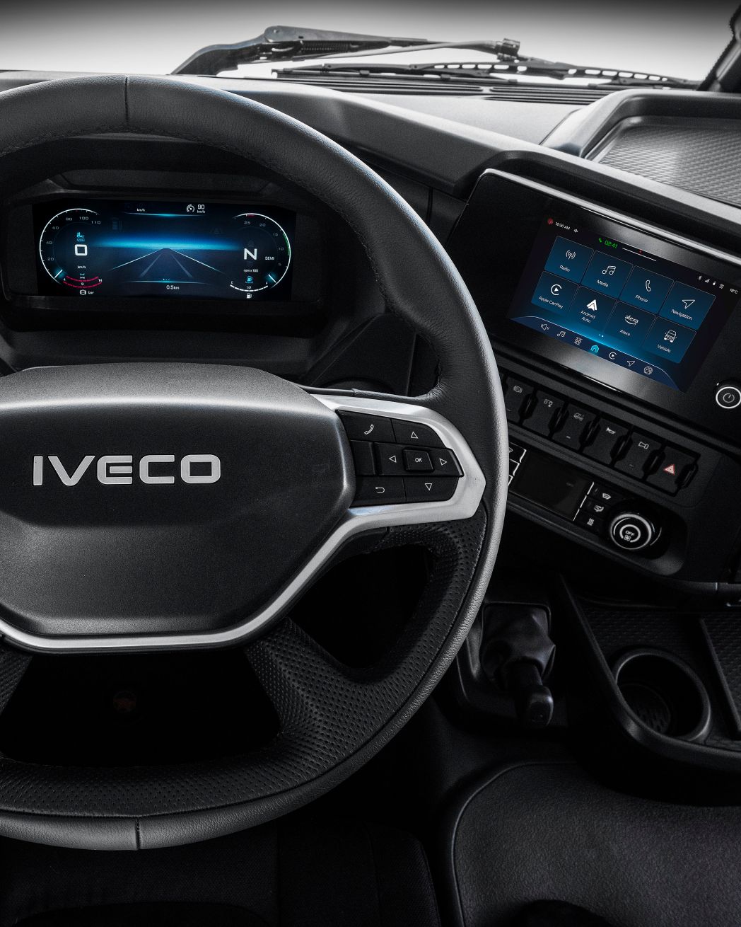 IVECO DRIVER PAL, asistenti dixhital vokal në bord i ndërtuar mbi Amazon Web Services me funksionet Amazon Alexa*, është plotësisht i integruar dhe kontrolli i klimës është i integruar.